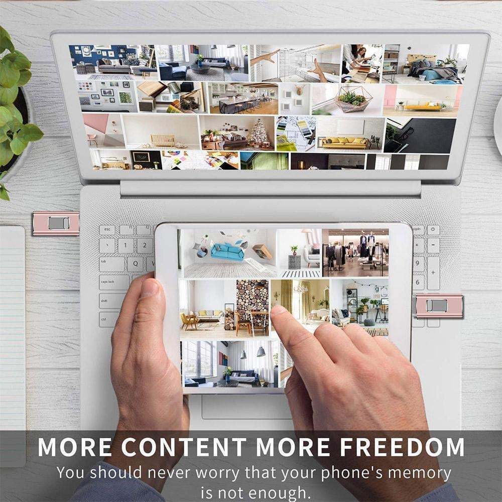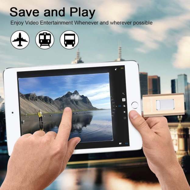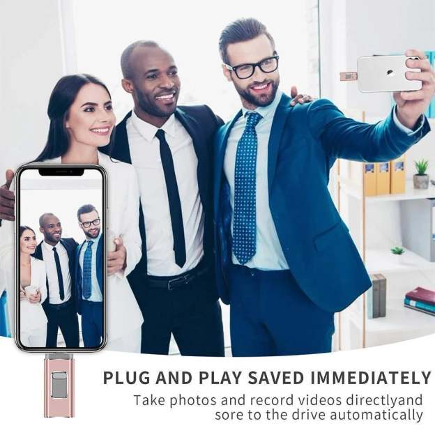 The Portable USB Flash Drive helps free up space for your iPhone, iPad or Android device. You are allowed to take all the pictures you want without worrying about running out of space. It is compatible with all iOS, Android, Mac, Windows devices. After setting up the mobile app, the drive backs up your files when you plug it in! You can share your content while keeping sensitive files secure across your device. You can even watch videos straight from the drive.