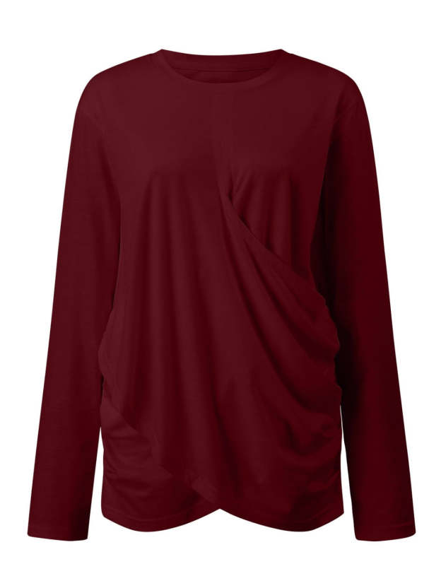 Ruched Round Neck Long Sleeve T-Shirt